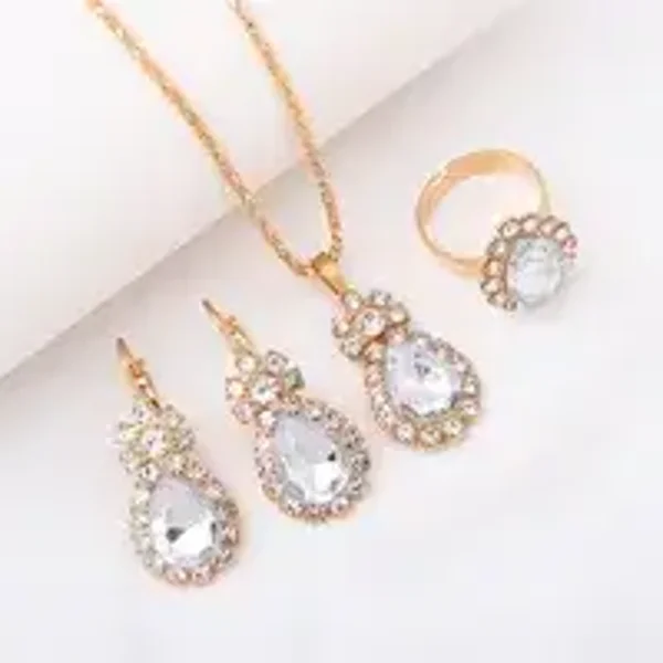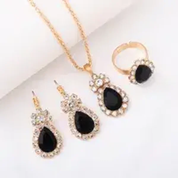 Parure goutte d'eau avec strass en acier inoxydable avec plusieurs couleurs disponibles.